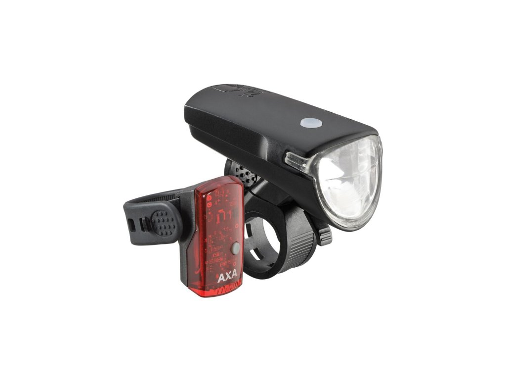 Set předního a zadního světla na kolo. AXA Greenline jsou světla se systémem nabíjení akumulátoru z USB.