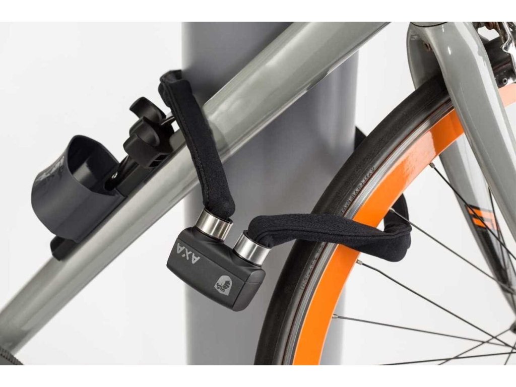 Skládací zámek z tvrzené oceli vhodný pro všechny druhy kol. Ocelové pouto má průměr 6 mm, je dlouhé 95 cm a je uloženo v barevném neoprenovém obalu. Zámek lze jednoduše připevnit k rámu pomocí speciálního držáku, který je součástí balení.