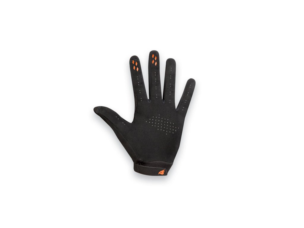 - Dlaň z materiálu Silicon: Odolná a skvěle prodyšná dlaň s perforací pro odvod potu. Silikonový potisk na konečcích prstů zajišťuje nekompromisní grip na brzdových páčkách i za mokra.