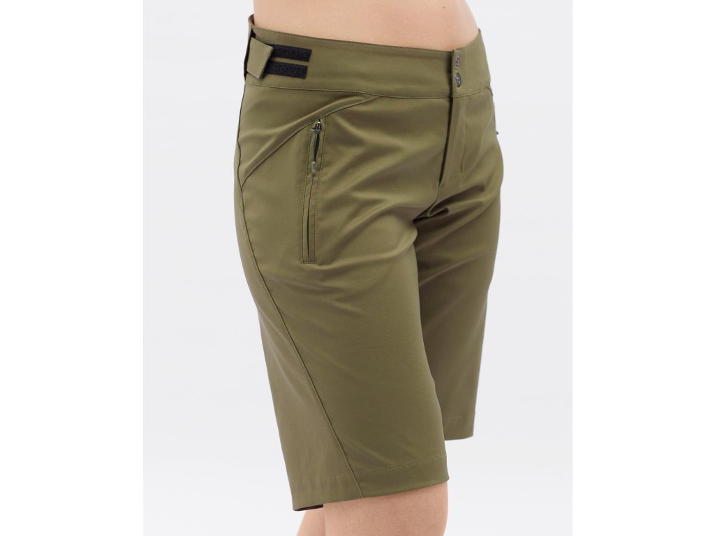 Dámské enduro kraťasy z lehkého a prodyšného materiálu Woven stretch. Zadní část je vyvýšená a anatomicky tvarovaná. V pase je možnost stahování na suchý zip, na bocích jsou kapsy na zip.