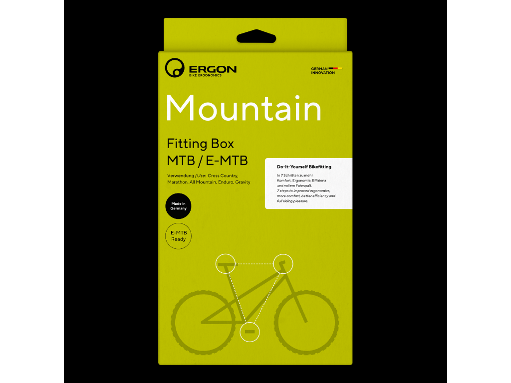 Správná velikost rámu je jen začátek. Pokud chceš jezdit déle, pohodlněji a efektivněji, musí kolo sedět přesně na tvoje proporce, styl jízdy i terén. ERGON Fitting Box MTB / E-MTB od Ergon ti umožní profesionální nastavení posedu doma – bez předchozích zkušeností.