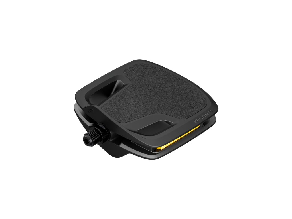 Pedály Ergon PT jsou platformové pedály s ergonomickým designem, který zlepšuje biomechaniku a pomáhá snižovat únavu při šlapání. Speciálně upravený povrch zajišťuje spolehlivou přilnavost s jakoukoliv obuví. I díky tomu jsou PT jedinými pedály oceněnými pečetí kvality Campaign for Healthier Backs (Aktion Gesunder Rücken e.V.).