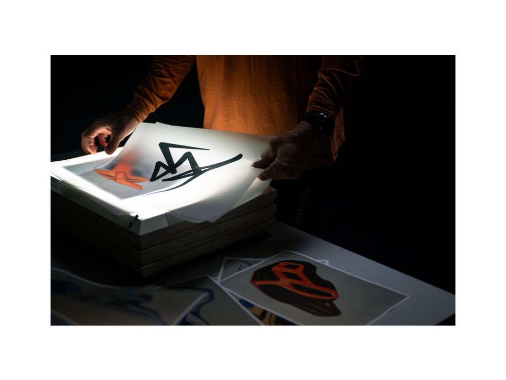 Vlastní logo je nyní Kilianovou osobní značkou: ostré, geometrické hřebeny s jeho iniciály v jádru. Barvy? Vzali jsme je přímo ze země, bláta a kamení – ne z barevného vzorníku Pantone. Každý detail je propojen se stylem jeho jízdy, s hledáním linií tam, kde žádné neexistují.