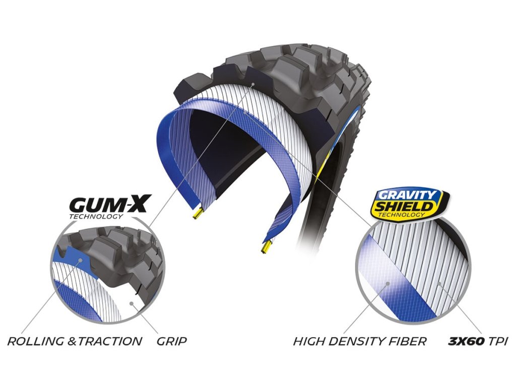 - Vzorek s technologií Gum-X ti dá skvělý grip v zatáčkách a výborný brzdný výkon.