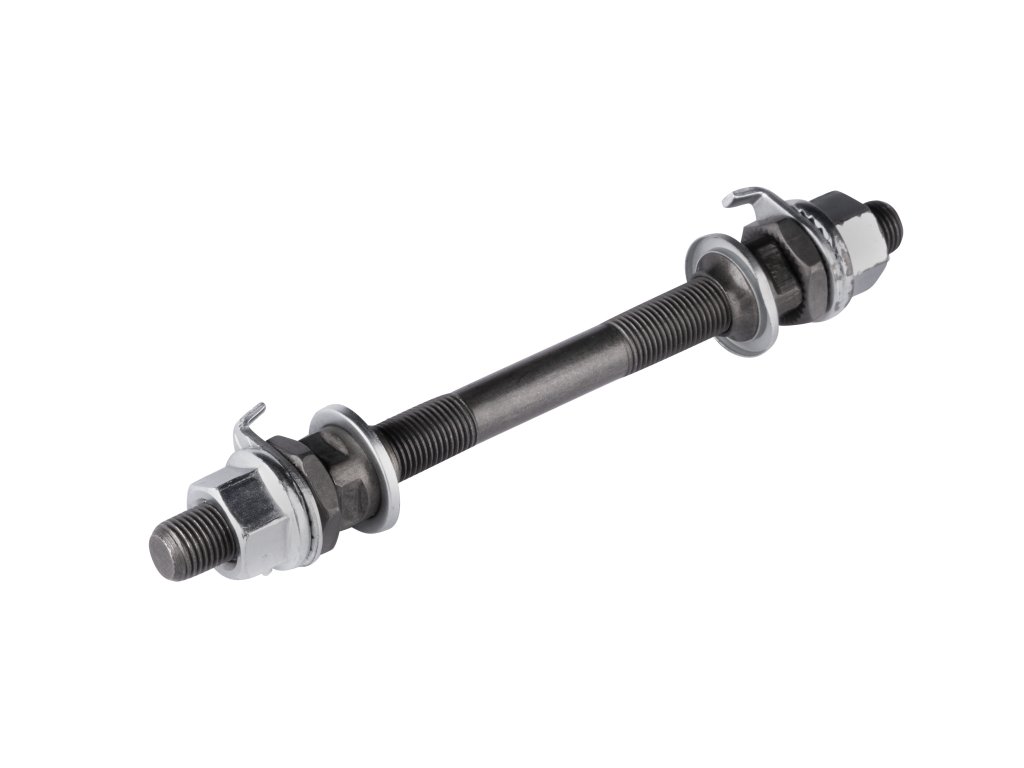 - širší osa, stejný závit jako zadní náboj