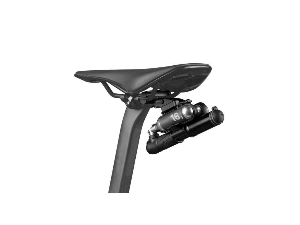 - Revoluční systém Duo Fixer: Tato sada využívá prostor pod sedlem naprosto geniálně. Horní část držáku zůstává volná pro další příslušenství (blatníky, světla), zatímco spodní část bezpečně nese vaši hustilku a dvě 16g kartuše.