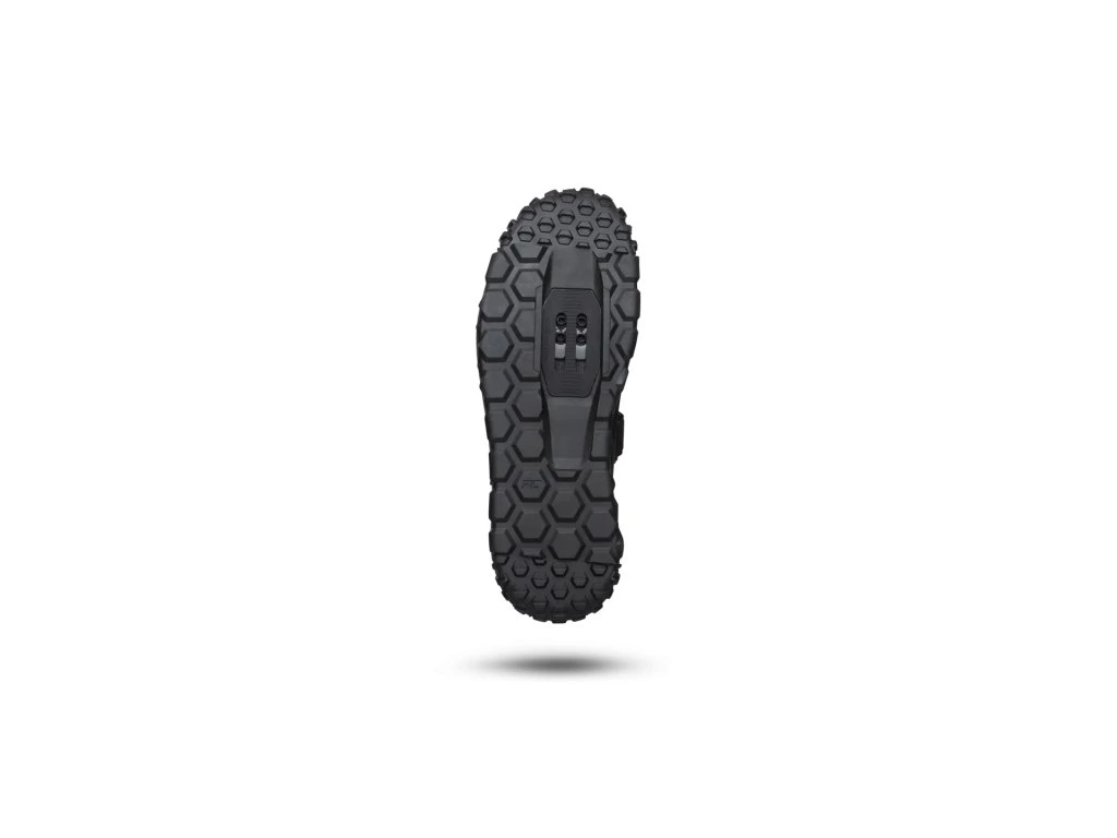 Podrážka Clip Grip s výrazným vzorkem inspirovaným terénní obuví. Přední a zadní část upravena pro grip při chůzi po trailu dolů i nahoru s výrazným přesahem do špičky a paty. Směs podrážky Clip Grip je použita u modelů určených pro SPD a má ideální poměr přilnavosti, odolnosti a tuhosti pro přenos síly vpřed. Výsledek vývoje s firmou Rubber Kinetics (Good Year). 42 mm široký a extrémně dlouhý domeček pro naprostou jistotu zacvaknutí do pedálu v každé situaci. Vložené plastové pouzdro pod umístěním kufrů jako dodatečná opora podrážky.