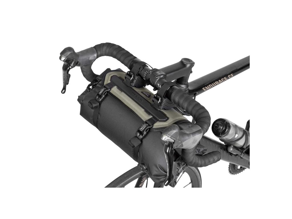 Ideální řešení pro transport spacáku a náhradního oblečení. Topeak FrontLoader o objemu 8 litrů je lehká a vysoce odolná brašna na řídítka, která vám umožní efektivně využít prostor před kokpitem. Skládá se z pevného vnějšího postroje a vyjímatelného vodotěsného vaku s kompresním ventilem. Díky promyšlenému systému distančních podložek a rychloupínacích popruhů brašna bezpečně drží na svém místě, tlumí nárazy a nezasahuje do chodu brzdových a řadicích lanek. V barvě Moss Green je dokonalým doplňkem pro každé bikepackingové dobrodružství.