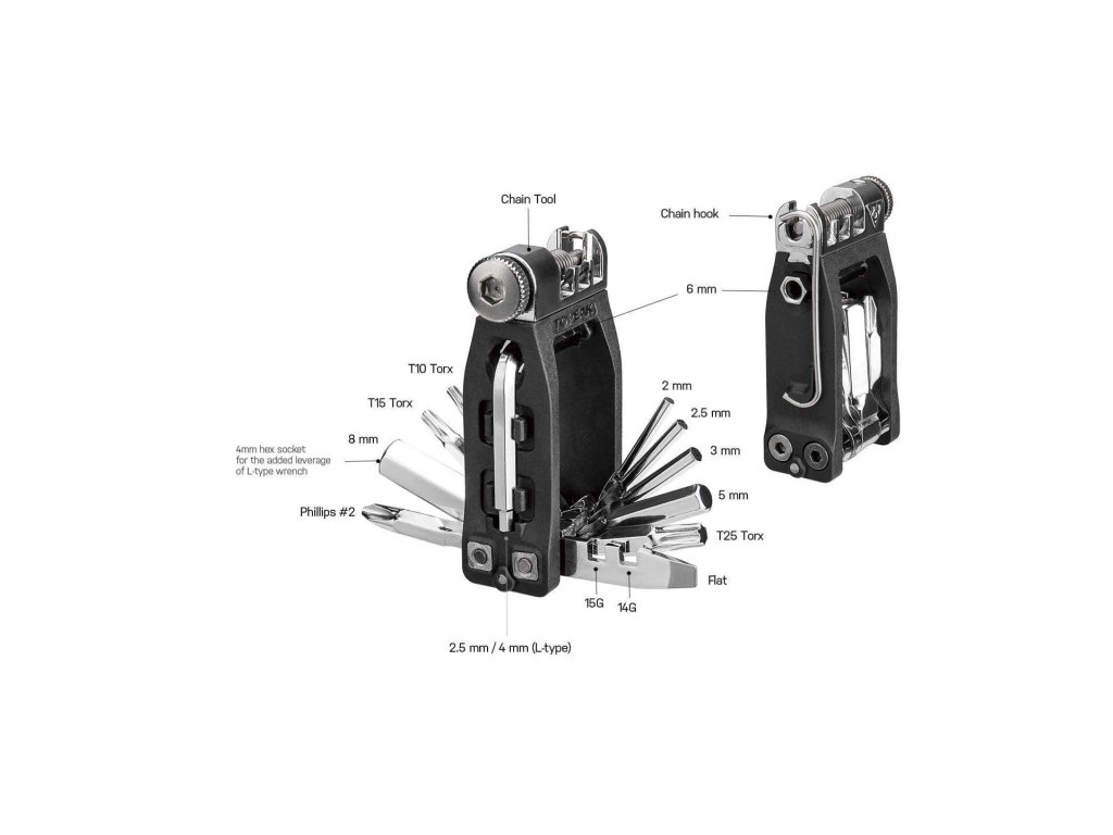 Kompaktní a lehoučké cyklo nářadí s 16 funkcemi včetně nýtovačky. Díky svým rozměrům se toto nářadí pohodlně vejde do kapsy u dresu, podsedlové brašničky nebo do schránky Ninja ToolBox pod košíkem na láhev.