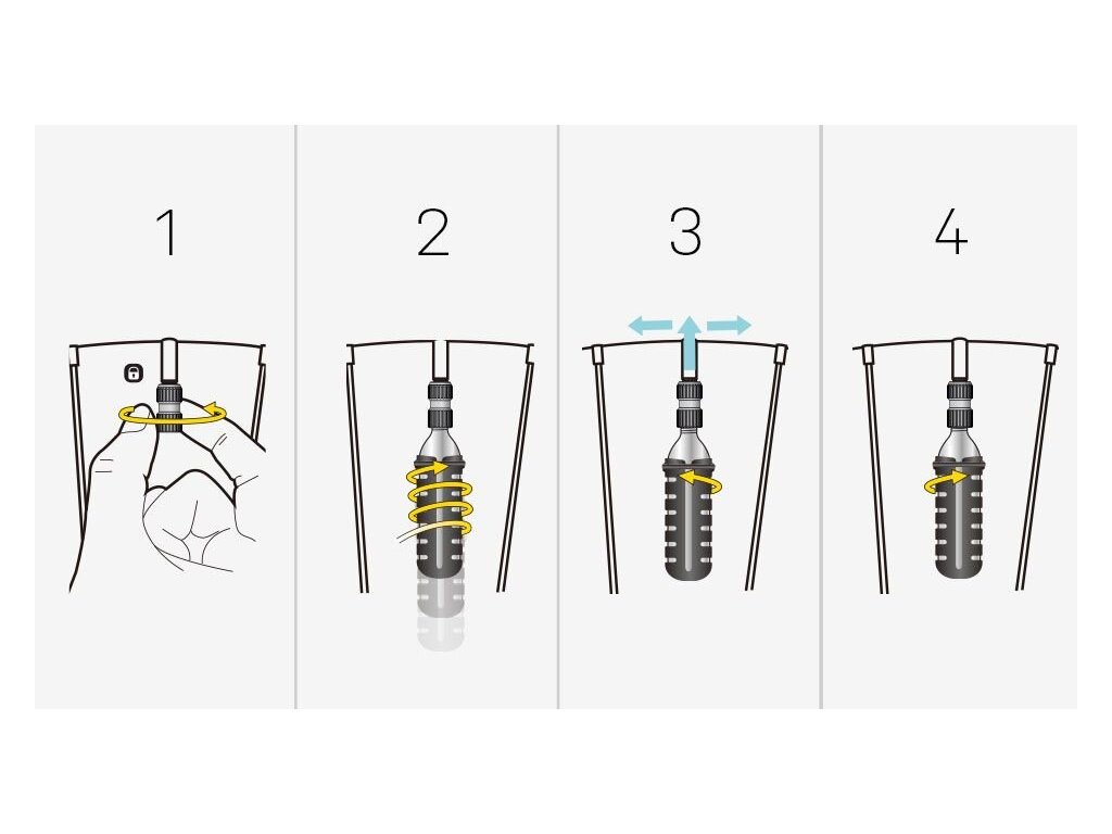Extrémně kompaktní, lehká a snadno použitelná CO2 hustilka s 25g kartuší. Precizně CNC obráběná hliníková hustilka je vhodná pro galuskové i auto ventilky a pracuje se závitovými 16g nebo 25g kartušemi. Stačí pevně zašroubovat kartuši a poté našroubovat hlavici na ventil, odšroubovat kartuši a během několika sekund vypustit veškerý plyn z kartuše CO2.
